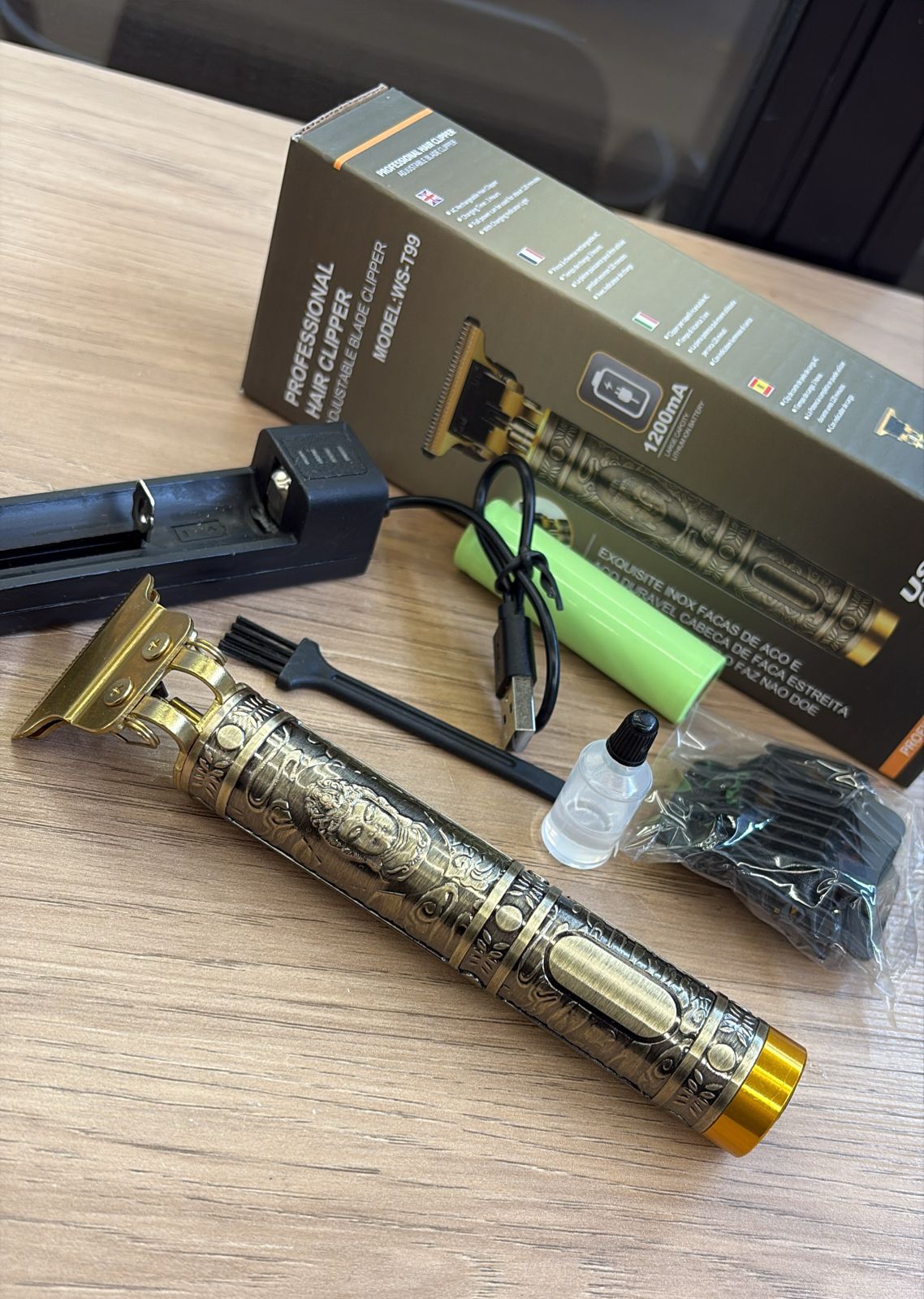 ¿Quieres lograr ese look de barbería sin salir de casa? La Barbera Patillera Buda T99 Recargable es la herramienta que transforma tu rutina de cuidado personal en una experiencia profesional. Con su elegante diseño en color bronce metálico, cuerpo de metal tallado, y un poderoso motor silencioso de baja vibración, esta recortadora no solo corta con precisión, sino que también refleja tu estilo y personalidad.